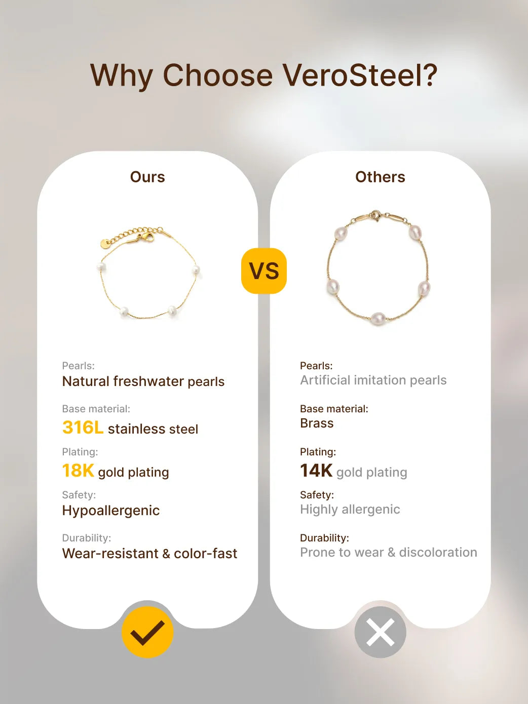 Unlike traditional plated metals, our 361L stainless steel base provides exceptional resistance to tarnish, fading, or discoloration.